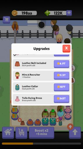 2.Hundreds of Products: The game features a wide variety of fashion products, including denim skirts, black lipstick, sneakers, and blue hair. Players can customize their fashion Stores to offer a unique shopping experience to customers. As the business expands, they can also develop their product lines to include high-end fashion items such as fur and suit.