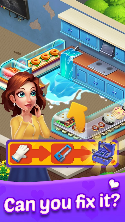2、One of the most exciting features of MergeLove is its fantastic cafeteria story. Players will follow an interesting plot and events while showcasing their culinary skills and managerial power to solve mysteries and build a restaurant Empire.