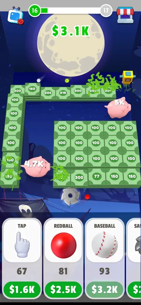 1. Continuous Upgrade: In IdleCashBreaker, Players need to continuously upgrade the strength and efficiency of their bouncing balls to obtAin higher cash returns. By continuously improving the ability to bounce balls, players can more effectively bounce and hit different currency stacks.
