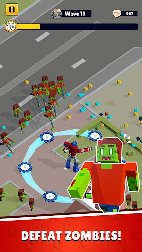 1.High-Octane Action: World Defense delivers an exhilarating gaming experience with fast-paced auto-attack gameplay. You'll dash through cityscapes, unleashing destruction upon hordes of Zombies, all while racing against the clock.