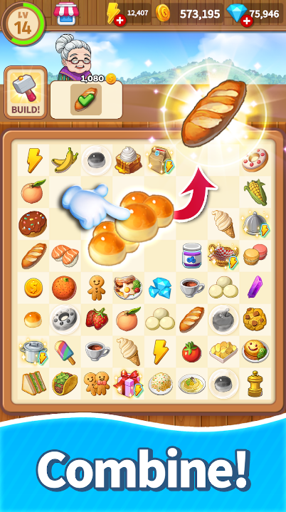 3、Solve Match puzzles by merge bread, fruit, and jewels: The game requires players to solve Match puzzles by merging bread, fruit, and jewels, which adds an exciting and challenging aspect to the game.