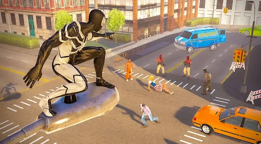 1、Play as Spider Hero: In this exhilarating AAA hero action game, players take on the role of the legendary Spider Hero. This character is tasked with combatting the criminal underworld that is plaguing the city.