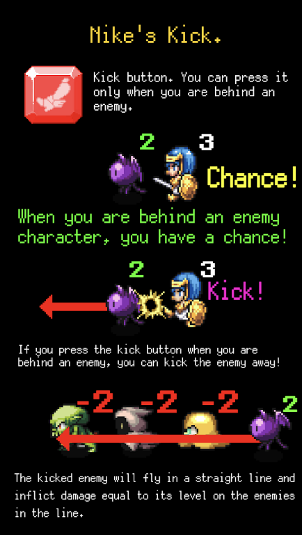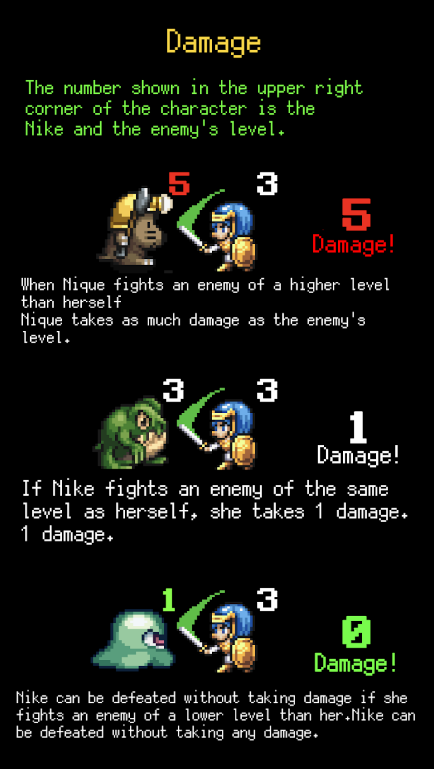 1、Strategic combat: Players must use Strategy and careful planning in combat since Nike will be damaged in a fight against enemies that are higher level. However, players can kick off a high-level enemy if they take it by surprise.