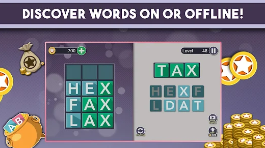 2、Earn bonus coins - Earn bonus coins for completing each chapter and use them to get hints to solve the word jumble.