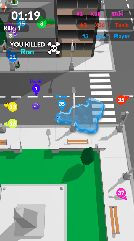 2、Pulling In Opponents: The goal of the game is to pull opponents into the blob's mass, absorbing them, and growing even stronger.