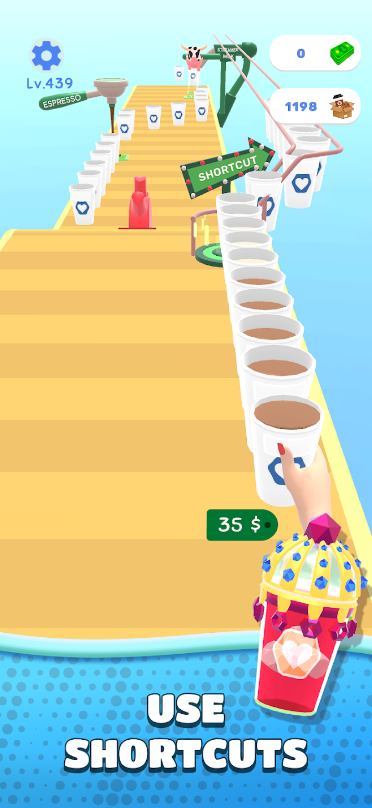 2、Fun 3D Graphics: Coffee Stack's 3D graphics are captivating and add to the overall fun quotient of the game. From the coffee cups to the CoffeeShop décor, everything is Designed to immerse you in the world of coffee.