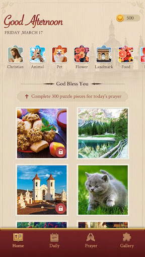 2.In addition to the puzzle-solving aspect, Bible Jigsaw Puzzles offers a deeper spiritual connection through its prayer feature. As players complete their daily puzzle goals, they unlock the ability to engage in prayer within the game. This fosters a sense of reflection and allows players to connect with their spirituality while enjoying the gameplay. It adds a unique dimension to the overall experience, making it more than just a puzzle game.