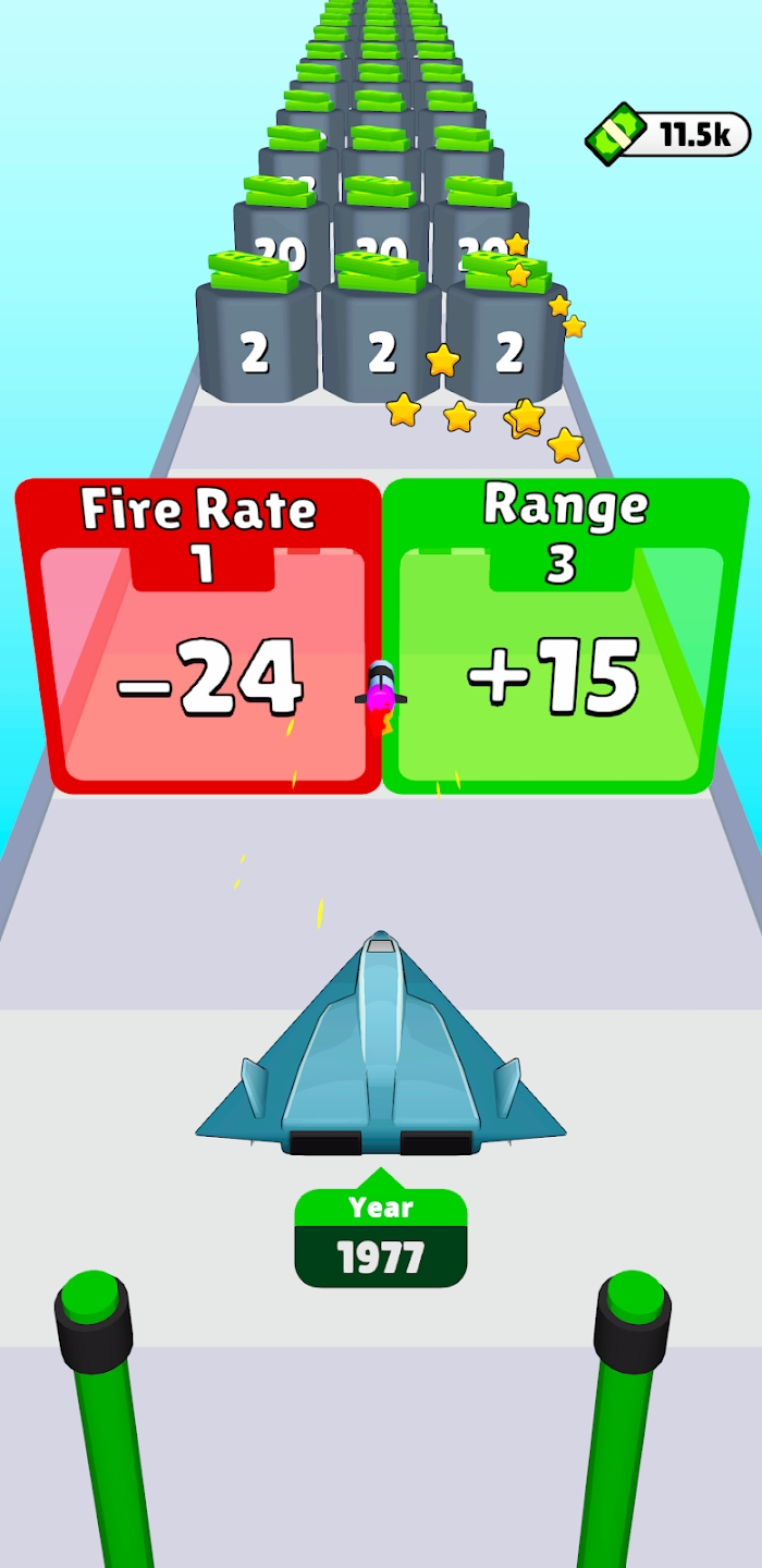 2. Upgrade System: Players can upgrade their airCraft by collecting rocket pods and loading them, gaining higher attack power, defense, movement speed, and durability attributes.