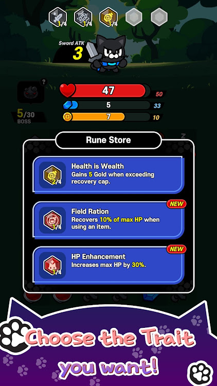 1. Exciting adventure plot: In an epic journey, you will explore the unknown world with the hero cat, fight against various enemies, unlock new areas and challenges. The plot will drive your game forward and immerse you in the world of the game.