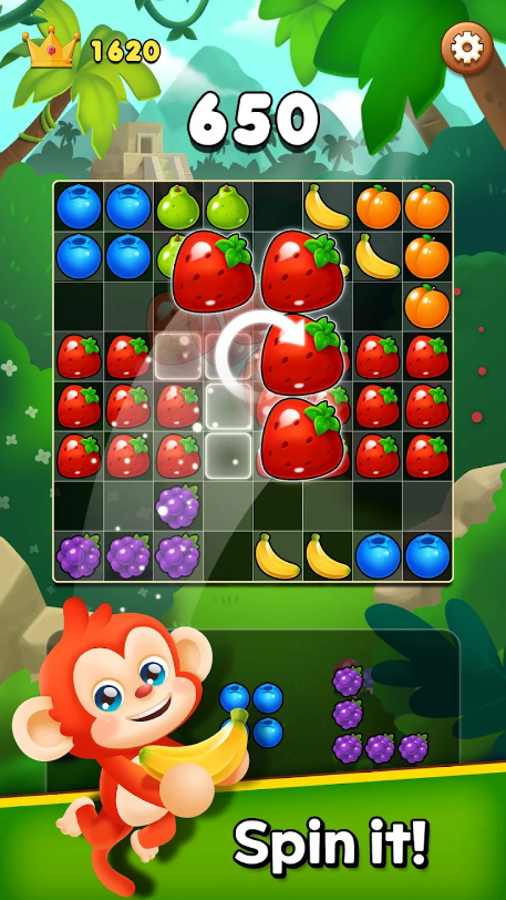 1、Cute jungle Theme: FruitsBlast has a fun and charming jungle theme that is sure to please players of all ages. The game features bright and colorful graphics, with a little monkey serving as the player's guide and friend as they blast their way through the fruit-filled levels.