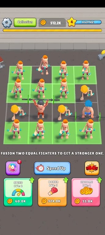 1.The core Mechanic of Fusion Fight Tycoon involves merging boxers who look alike. Players start with a few basic boxers and must merge them together to create more advanced and skilled fighters. By merging two boxers of the same level, players can create a higher-level boxer with increased stats and abilities. This merging process allows players to continuously upgrade their fighters and make them more powerful.