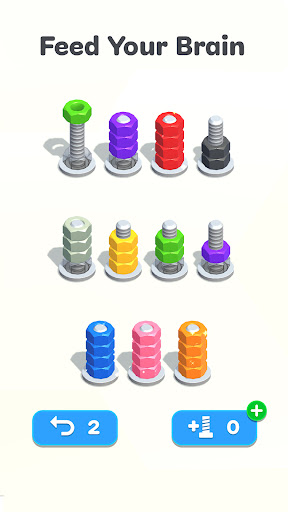 1、Develops critical thinking and problem-solving skills - This game is perfect for individuals who want to Train and enhance their critical thinking and problem-solving skills. The Player must sort mixed-up nuts onto corresponding bolts of the same color, increasing the difficulty level as they progress.