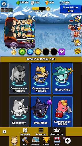 1.One of the standout features of Idle Legend of Cats is its enormous stages. Players can clear stages and engage in Battles across various areas, providing a diverse and engaging gameplay experience. Each stage presents new challenges and enemies to overcome, keeping the gameplay fresh and exciting.