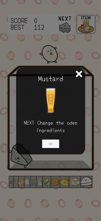 To add an extra layer of Strategy and excitement, Oden Game - Merge Puzzle introduces Item Mode. In this mode, players have access to a variety of items that can be used to their advantage. These items range from simple boosts that increase the speed of ingredient drops to more powerful effects that can clear the board or transform multiple ingredients instantly.