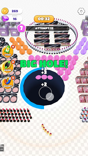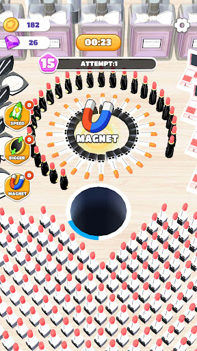 1.The gameplay of Hole And Makeup revolves around controlling a black hole and collecting various makeup tools sCattered throughout the map. As players slide their black hole around, it absorbs the makeup tools, gradually increasing in size. The objective is to fill the hole with as many cosmetics as possible, allowing it to swallow larger and more extravagant makeup kits.