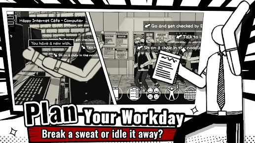 2、Choose Your Path: The game offers a range of gig jobs for you to choose from. Whether you want to master agility-tested woodcutting, concentration-intensive chicken counting, or street busking, the choice is yours. Each job comes with its own set of challenges and Rewards, allowing you to develop your character in different ways.