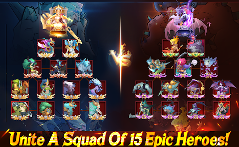 1、Unite a Squad of 15 Epic Heroes: Players can form a squad of 15 epic heroes, each with unique abilities and strengths derived from diverse factions such as Nature, Barbarian, Hell, Abyss, Light, and Dark. This allows for a wide range of strategic combinations to tackle the darkness threatening the realm.
