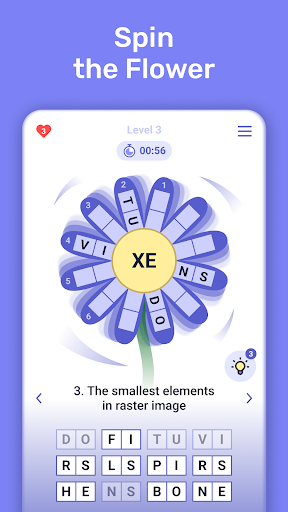 2.The innovative gameplay of BloomBlitz sets it apart from other word games on the market. Players are invited to spin the flower, read the task, guess the answer, and piece together words to solve the puzzles presented to them. This interactive and engaging approach to gameplay ensures that players are actively involved in solving the challenges, creating a sense of immersion and satisfAction as they work through each level. With its intuitive controls and user-friendly interface, BloomBlitz makes it easy for players to jump into the game and start unraveling word riddles with ease, allowing for a seamless and enjoyable gameplay experience.