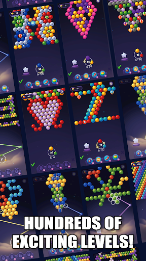 2.In Bubble Pop Sky, players will encounter a variety of exciting levels filled with shooting stars, rockets, hot air balloons, and more. Each level presents unique challenges and obstacles that players must overcome in order to advance. By using their bubble-bursting skills and strategic thinking, players can clear levels with fewer shots to earn higher scores.