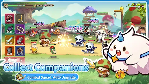 3、Equipment Galore: Say goodbye to tedious Farming during battles and simply tap the Genie to access a wide array of equipment options. Enhance your mushroom warrior with powerful gear and gear up for exciting encounters without the hassle of grinding for loot.