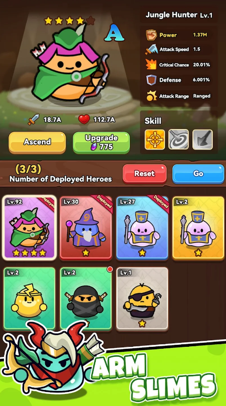 1、Mighty Slime Legion: Equip your slime legion with the best gear for battle to ensure they are prepared to face any challenges that come their way. Strategically outfit your slime warriors to maximize their combat effectiveness.