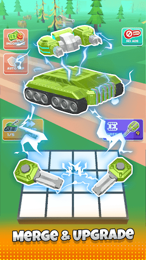 3、Tank Customization: Unleash your creativity by buying and merging various tank parts. Each component contributes to your tank's performance, appearance, and capabilities. Merge identical parts to level up and unlock advanced, more powerful tank elements.