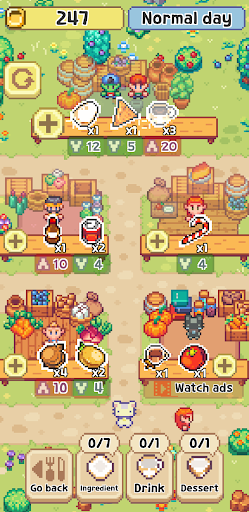 3、Price Sensitivity: Success in Meow Bistro depends on smart financial decisions; players must balance buying ingredients at the best prices while ensuring that the dishes they create will yield a profitable return when sold.
