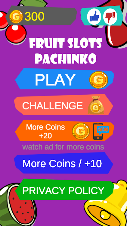 1. Play Fruit Slot Machine: Click the "Play Coins" button to enter the game, touch the icon button that you think will appear, click the play button, and finally click the collect button to add up the earned coins.