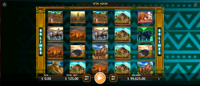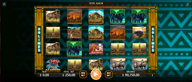 2. The game includes various African unique wild animals such as lions, elephants, zebras, giraffes, etc., each with its unique Design and animation effects.