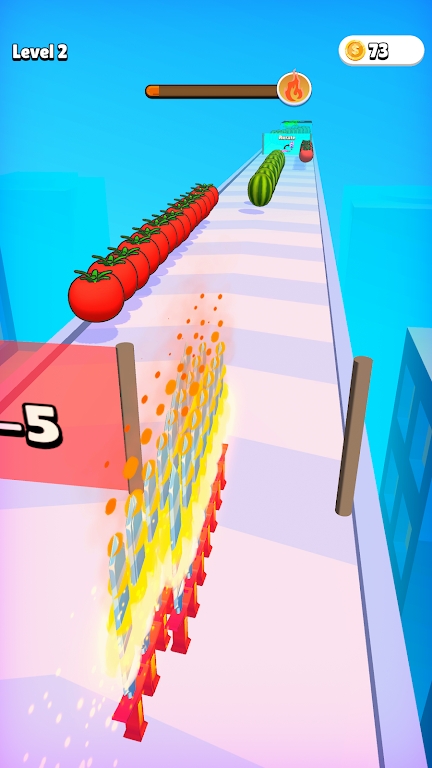 3.Challenging level Design: Sword Merger Run features several challenging levels, each with a different layout of obstacles and fruits. Players need to flexibly respond to various situations, and properly use the skills of merging swords to break through the level and achieve high scores.