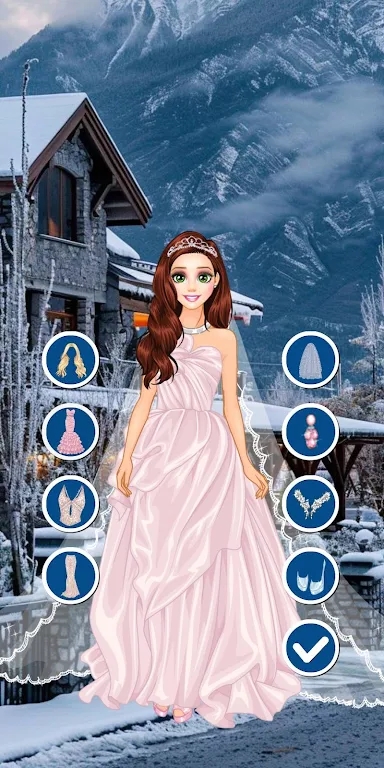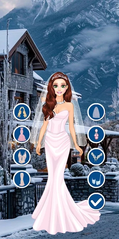 2.Winter Theme: The game is set in a winter wonderland, with snowy backgrounds and festive decorations. Players can create a bridal look that is perfect for a winter wedding.