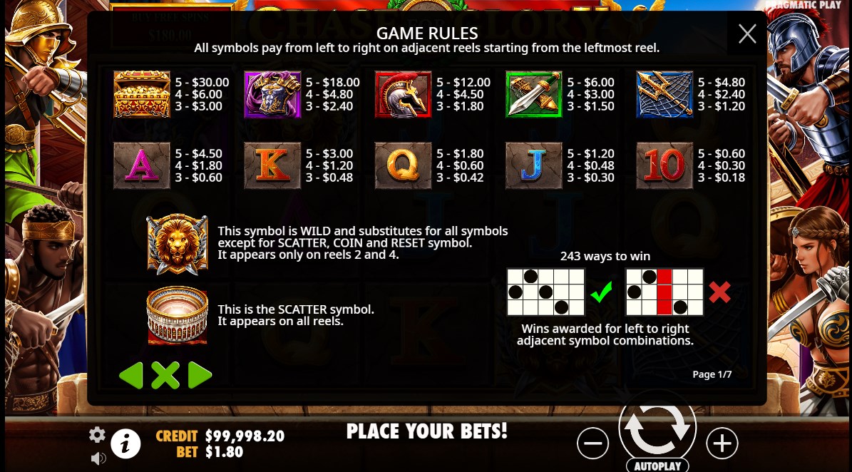 1.Multipliers: Players can increase their winnings with multipliers in Chase for Glory. These multipliers can double, triple, or even quadruple the value of their wins.