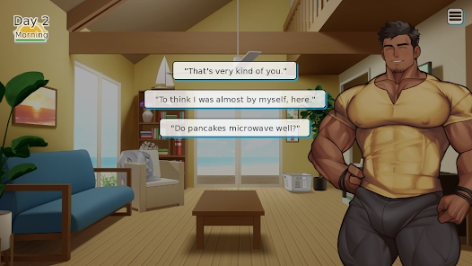 Tranquility apk download for android Relax on the beach in this Short, Casual gay click game. You will have the opportunity to meet a friendly muscular gay man named Kyle at the seaside villa. After being confused with beach rentals, the two of you found yourself becoming roommates who briefly stayed in heaven. Anyway, his Companions are all good, but he does seem a bit melancholic How will you spend your one week vacation?The game provides Players with a relaxed beach environment, taking them into a world full of sunshine and Romance through simple click through gameplay. You can explore this beautiful seaside villa with Kyle and enjoy the sunshine, waves, and pleasant atmosphere. There are multiple endings in the game, and the Story will have different development directions based on your choices and Actions.