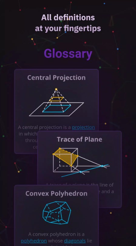 3. The built-in vocabulary function of the application allows users to Search for geometric terms and definitions at any time during the learning process, ensuring that users have no obstacles in understanding.