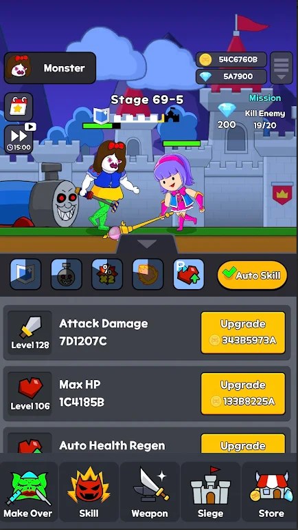Monster Makeover Inc apk download for android Embark on a journey of whimsy and hilarity as you strive to become the mightiest "Castle Monster" and win the heart of a prince! Join a girl's thrilling and comical quest as she dreams of achieving the title of the most powerful "Castle Monster" and marrying the prince! Confront annoying humans who dare to stand in your way, shatter their defenses, and conquer the Kingdom with your charm and strength!