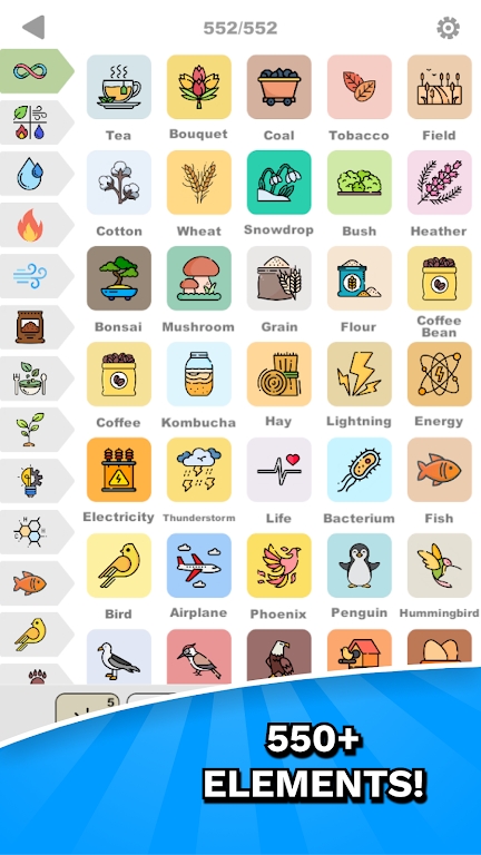 2.Over 550 Elements: With a wide variety of elements to unlock, players will have endless possibilities to discover and create new combinations.
