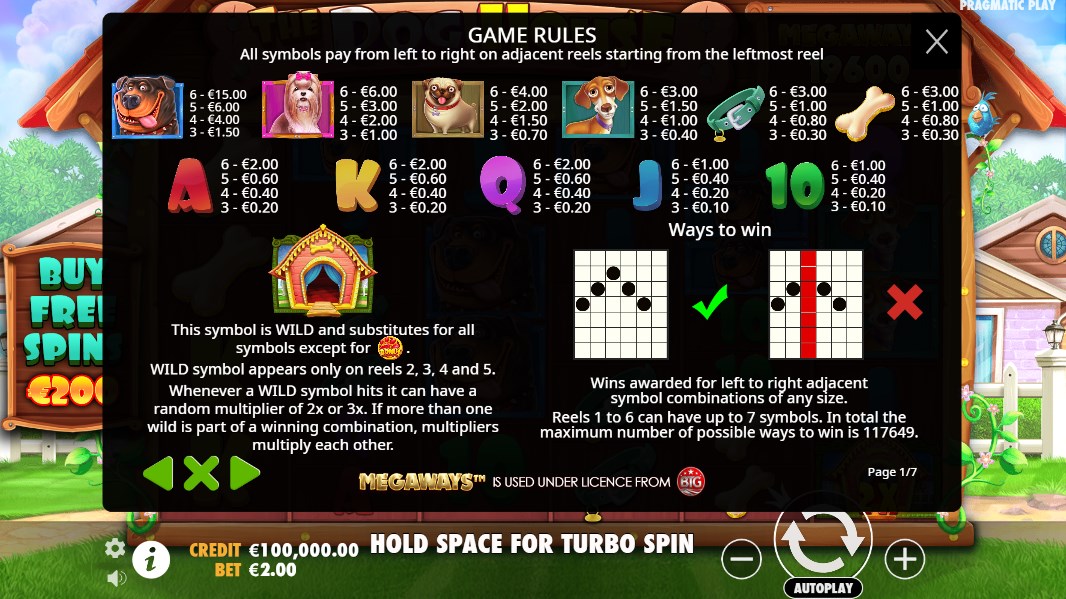1.Megaways System: The Dog House Megaways features the Megaways system, which offers up to 117,649 ways to win on each spin. With its dynamic reel layout and random number of symbols on each reel, players can enjoy a different gaming experience every time they spin the reels.