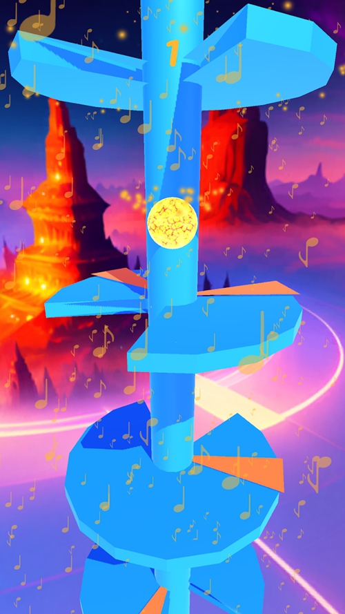 1. Players need to guide the movement of the ball according to the rhythm of the music to avoid obstacles and smoothly pass through the spiral tower.