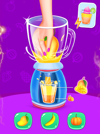 2.Blend fruits in a blender: Players can use their fingers to tap on the screen and blend the fruits in a blender, creating a smooth and delicious mixture for their drinks.