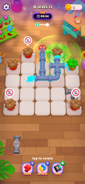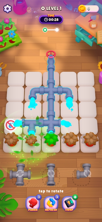 1.Intuitive gameplay: Water My Plants is easy to learn but difficult to master. Simply drag and drop pipes onto the board to connect them and water the plants.