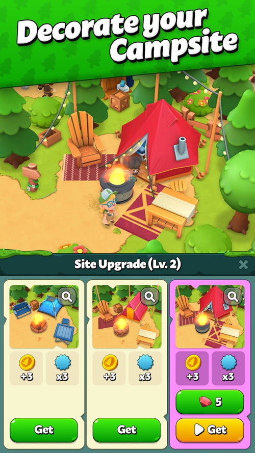 2.Gradually unlocking upgrades: With the accumulation of funds, players can upgrade tents, facilities, and expand camping site services and attrActions.