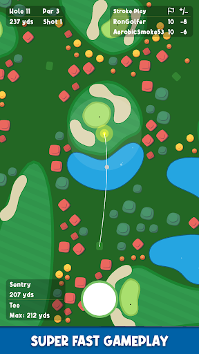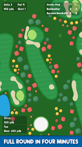 Bogey Royale is the latest mobile golf game sensation sweeping the nation! Not simply just another golf game, Bogey Royale has reinvented its genre with its top-down 2D approach, bringing a new wave of excitement straight to the palm of your hands. Emphasizing fast gameplay and compelling Player competition, this isn't just a game; it's a rEvolution. With Bogey Royale, you can play a full round of golf from any location, and in under four minutes, experience the thrill of the greens in the comfort of your own home. It's tee time, and it's time you become a part of the Bogey Royale phenomenon.