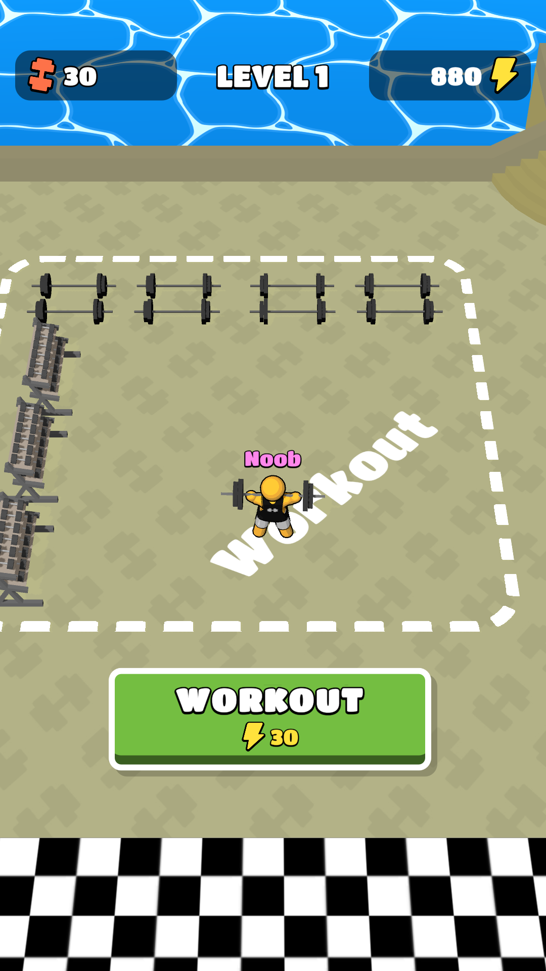 To amplify strength, characters must participate in workout exercises purchased with the lightning collected throughout gameplay. With each purchase, exercises gradually level up, increasing in cost. Players engage in these workouts in a dedicated area filled with weights. Moreover, competitive exercises with other players can occur, allowing players to challenge each other to see who can gather more items while developing the perfect physique. Be aware, movement speed decreases when the player attempts to pull weights exceeding their maximum capacity.