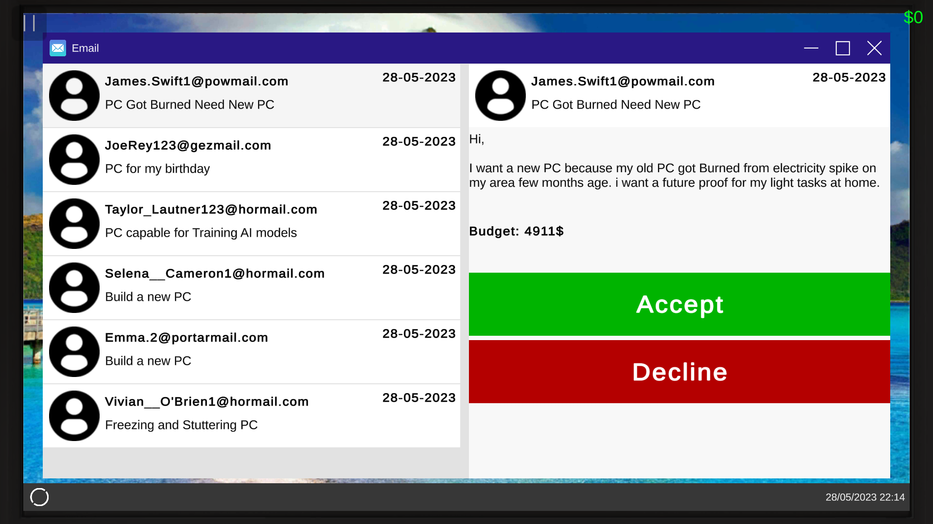 As an avid gamer, I found PC Builder Simulation 3D to be a captivating and immersive experience. The opportunity to build and personalize my dream PC, evaluate its gaming performance, and enhance my Store kept me thoroughly engaged for hours on end. The stunning graphics and meticulous attention to detAIl within the game contributed to making the entire experience feel incredibly realistic and satisfying. I wholeheartedly recommend this game to fellow PC building aficionados or gamers in Search of a distinctive simulation Adventure.