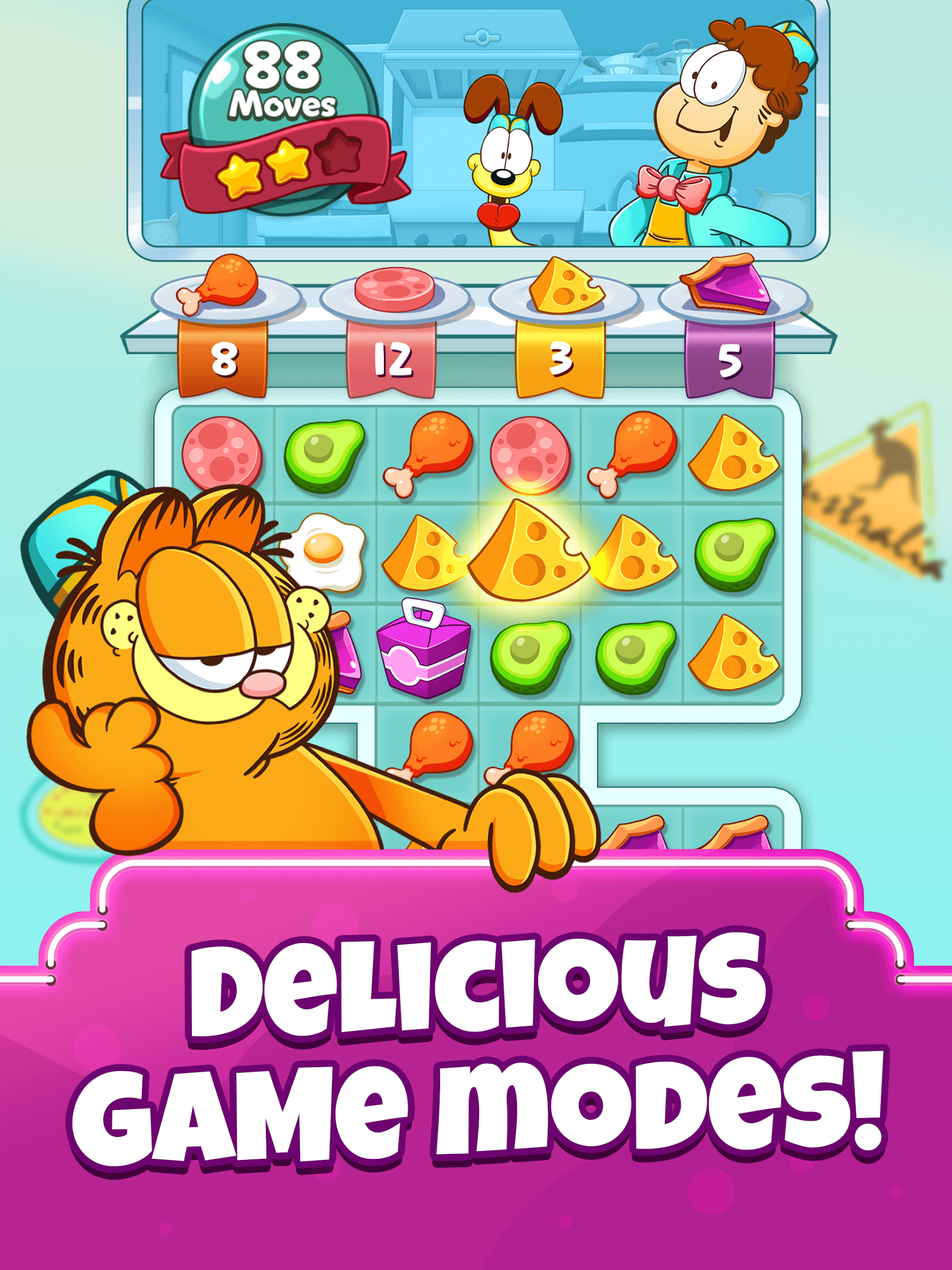 Within the puzzles, you'll come across gift boxes, and conquering these puzzles rewards you with a plethora of appealing gifts. These may include helpful hints or essential kitchen tools. Each gift holds its own significance, and completing the challenges presented by Garfield Food Truck allows you to collect many special prizes. The game consistently engages players in the pursuit of uncovering these intriguing treasures.