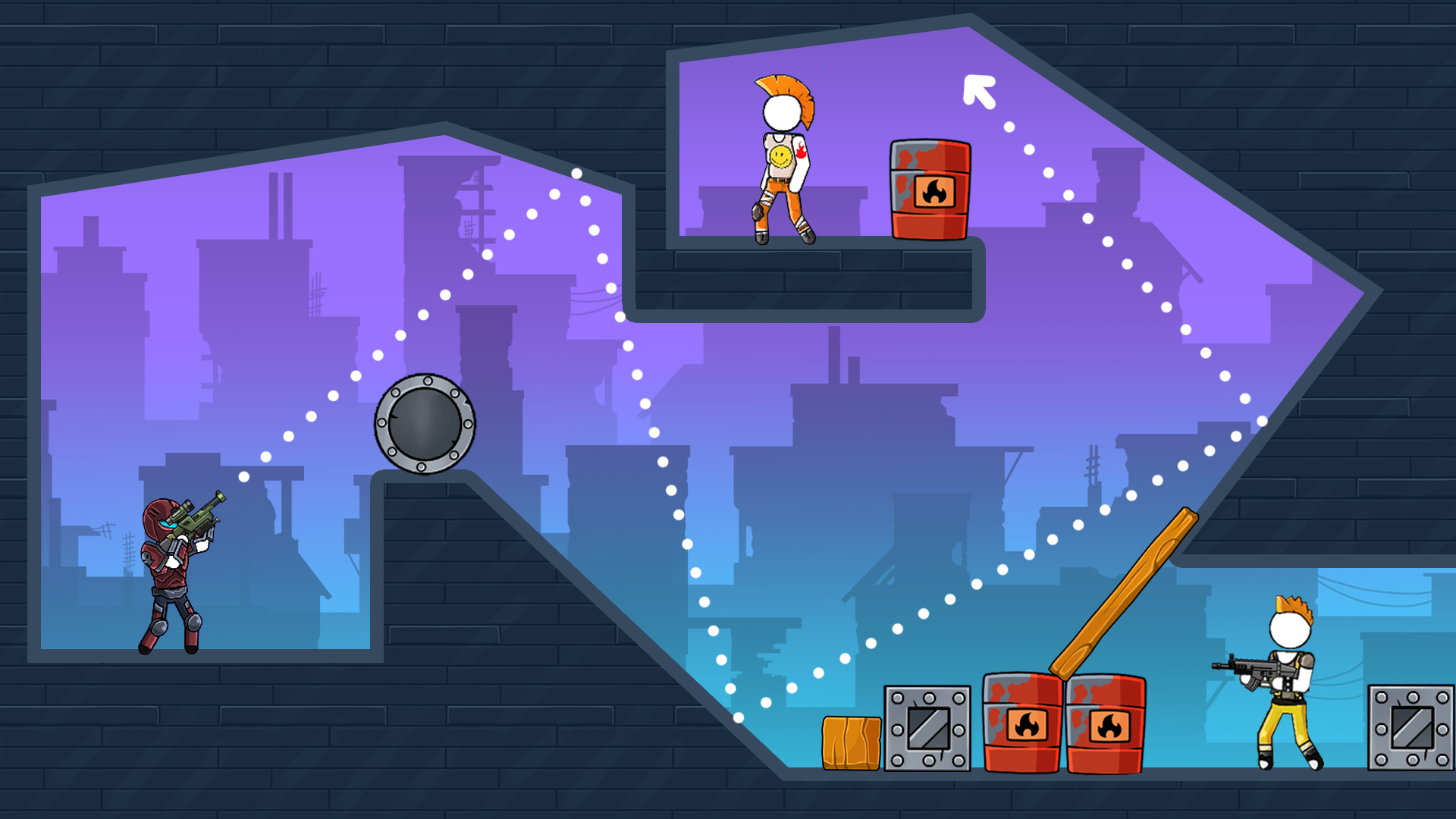 Unleash a barrage of bullets on your adversaries in one of the most addictive stick man games available. Train your shooter to be a skillful stick man before entering combat. You will be captivated by the unique aiming mechanism that this two-player game provides. Once your personal mr. gun executes a control shot, attaining precision on subsequent shots becomes a challenge due to the recoil impacting your stick man. A mightier shot will result in a more substantial recoil, which may throw you or your hero off balance. Prepare for an extraordinary stick man showdown using all the game's perks to enhance your skills as a gun aficionado!