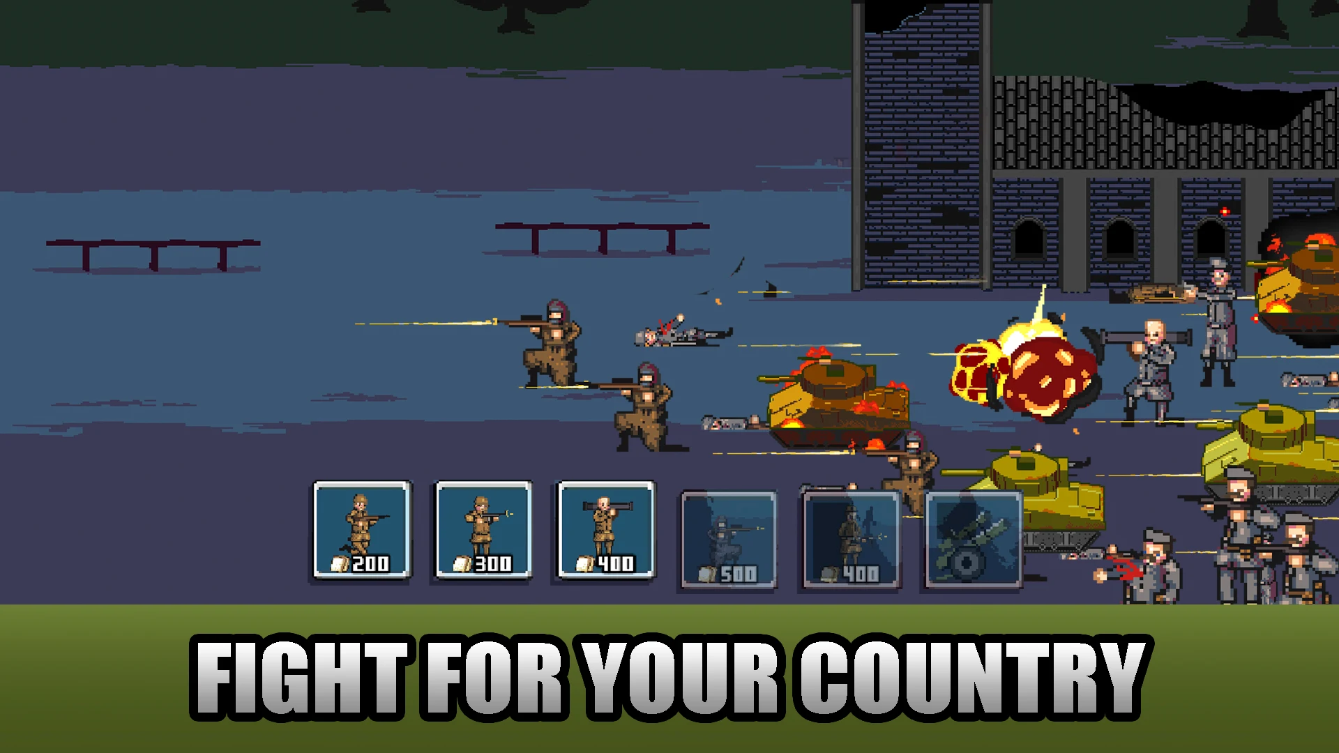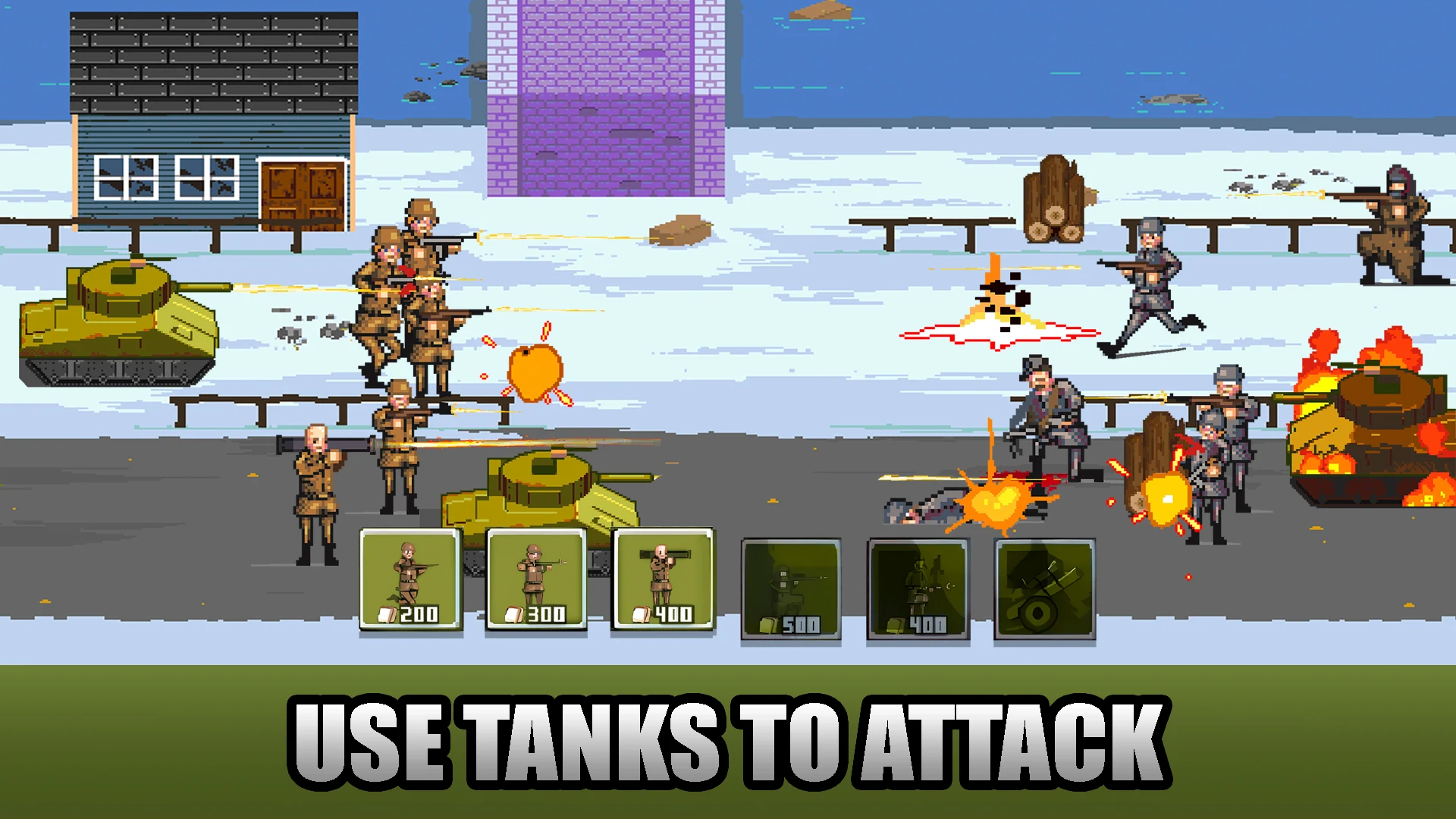 Simultaneously leading and defending requires both strategic foresight and exemplary leadership. Craft broad strategies and refine them into specific orders for deploying tanks, specialized units, officers, and soldiers across various fronts. Coordinate operations with fellow commanders during offensive and defensive maneuvers to optimize troop command. Ideally, arrange forces horizontally, allowing for alternating strikes and defenses—balancing visibility with effective gameplay mechanics. Combat proceeds automatically when soldiers are unmonitored, simplifying control akin to the game's visual style. Command movements by tapping on divisions, selecting unit types seamlessly on-screen. Engage in 80 levels, each uniquely themed within the context of the war—with varying colors and textures reflecting different missions. Each player can manage several types of units: officers, assault tanks, Snipers, and infantry, necessitating varied strategies and roles. Defend your lines with heavy artillery, including Armored Cannons, mortars, and eventually aircraft and advanced war machines, offering an enjoyable battlefield experience on mobile platforms.