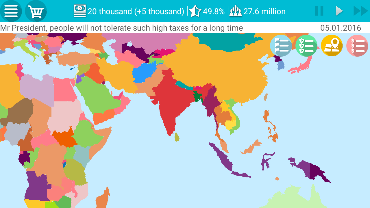 Are you confident in that claim? Then demonstrate it! The "President Simulator Lite" game allows you to assume control of one of the 163 contemporary nations. Engage in various political scenarios: tackle media challenges, manage espionage activities, respond to natural disasters, navigate wars, implement tax reforms, and combat crime. Showcase your strength, wisdom, and determination while striving to Build a superpower that sets and follows its own rules—failure to do so may lead to your nation's downfall.