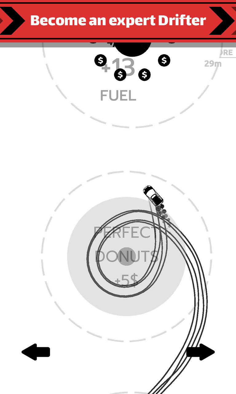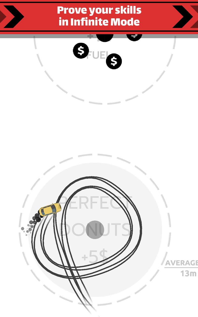 Similar to the endless runner genre, Donuts Drift has no definitive conclusion; players can only lose by straying off course or depleting their time. However, you can extend your limit by securing points near the inner circle, thus prolonging your gameplay duration.