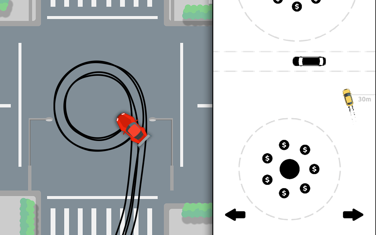 Moreover, employing the donut technique necessitates gathering collectible black balls featured on-screen, which serve as the game’s currency. Upon reaching sufficient amounts, players can acquire more powerful models or upgrade existing cars.
